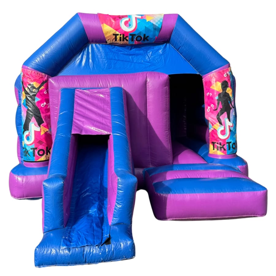 Bring your event to life with our TikTok Combination Bouncy Castle! This modern, eye-catching inflatable features bold TikTok-inspired graphics and a fun front-facing slide that children absolutely love. It’s perfect for older kids and dance-themed or music-themed birthday parties across Bolton, Bury and Manchester.