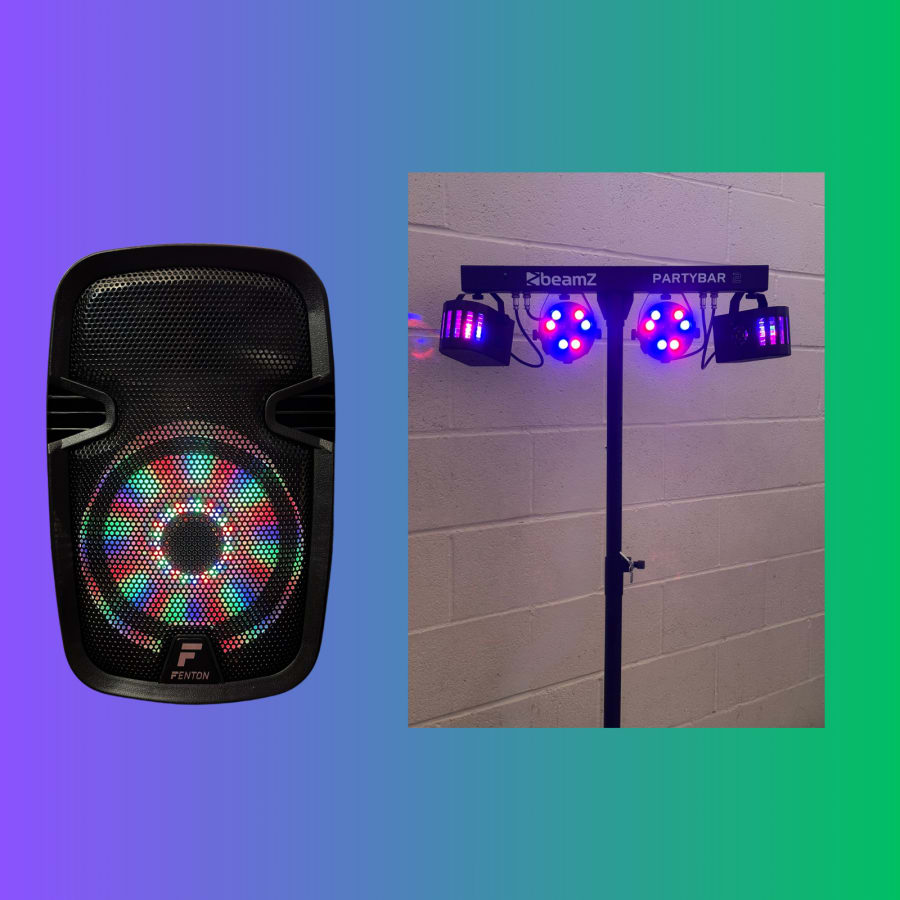 At the heart of the DIY Disco Package is our robust 300-Watt Bluetooth speaker. This mighty speaker is loud enough to fill most rooms with crystal-clear sound, ensuring that your music is heard by all your guests. Simply connect your device via Bluetooth and play your favorite tracks effortlessly. 🎶