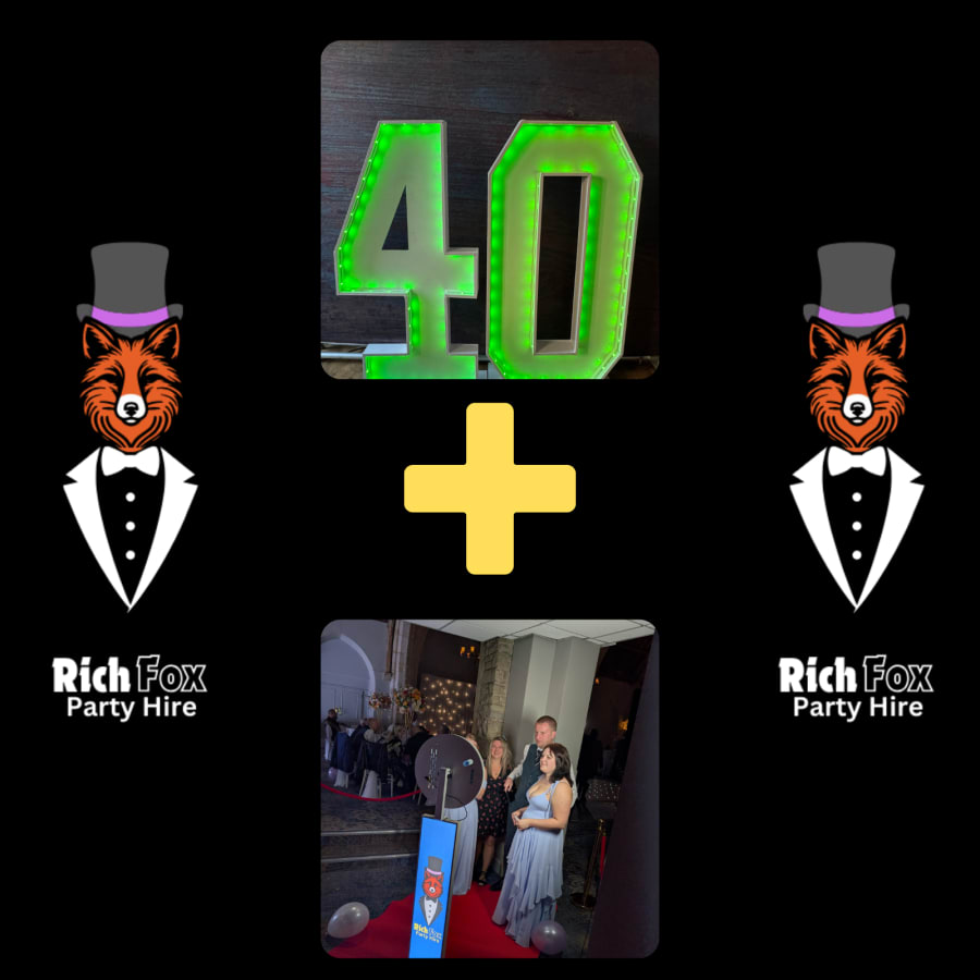 Make your event unforgettable with the Rich Fox Party Hire Ultimate Package, combining our Selfie Photobooth and Stunning Light Up Numbers. Perfect for weddings, birthdays, corporate events, or parties across Greater Manchester, Bolton, Bury, and nearby towns.